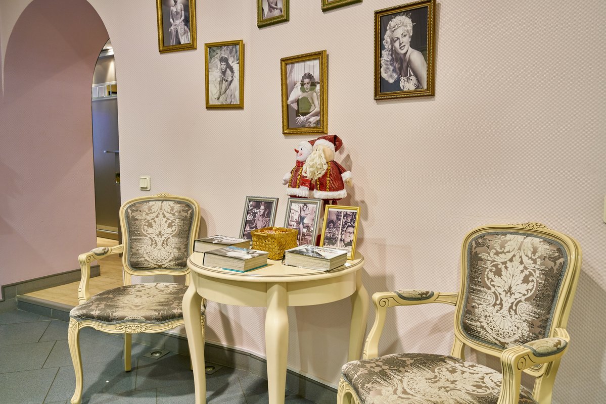 Также к услугам наших гостей антицеллюлитный массаж, косметология, татуаж, наращивание волос, вечерние и свадебные прически, педикюр.